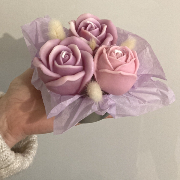 Le mini bouquet est sous forme de plusieurs bougies en forme de fleurs qui peuvent être retirées pour être alumée.