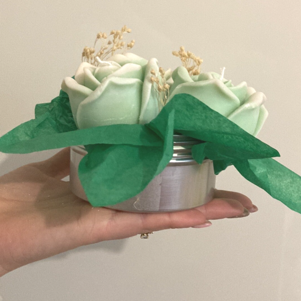 Le mini bouquet est sous forme de plusieurs bougies en forme de fleurs qui peuvent être retirées pour être alumée.
