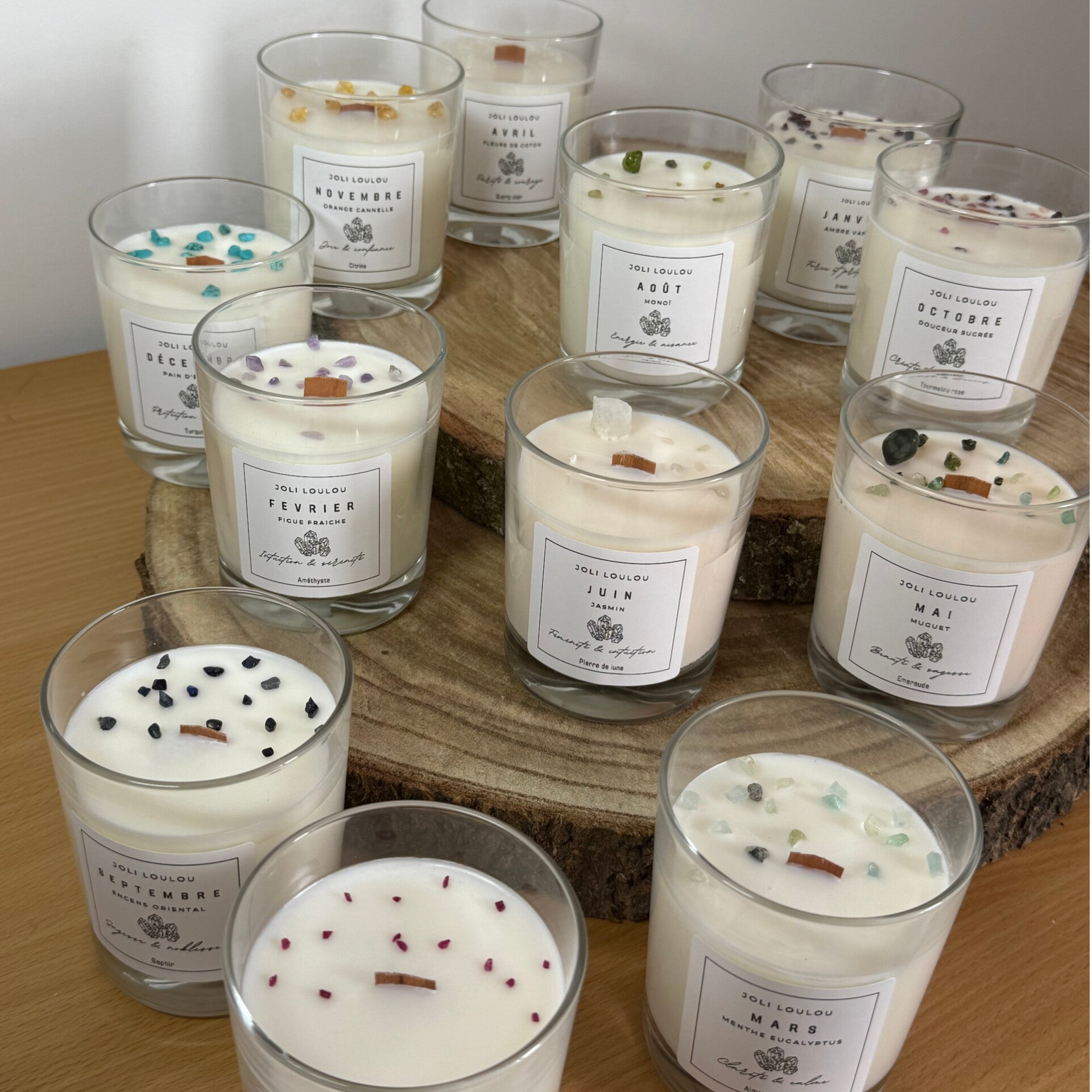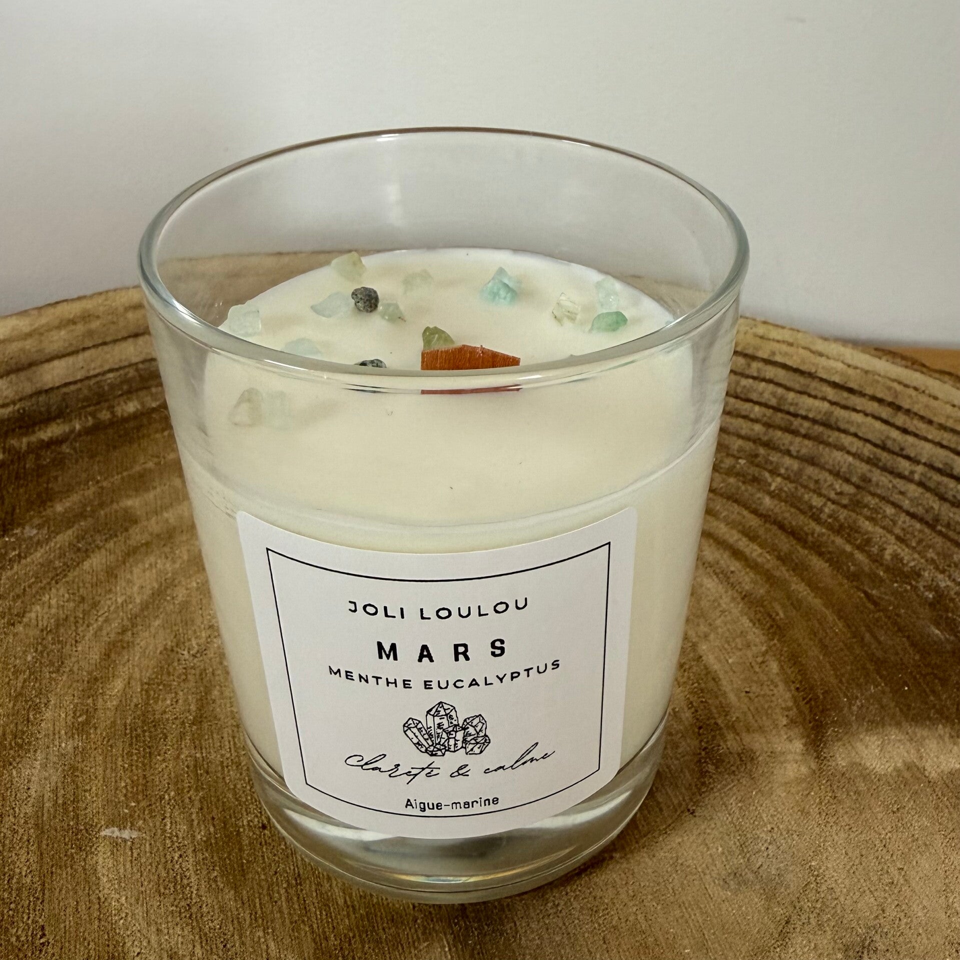 Notre bougie critaux du mois est réalisée avec du parfum de Grasse et ornée de cristaux et pierres naturelles.